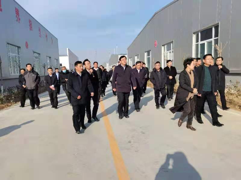 2020年12月25日上午,中共東明縣委書記張繼爭,縣委副書記、縣長孫遷國,率團蒞臨普爾阻燃材料生產基地調研。