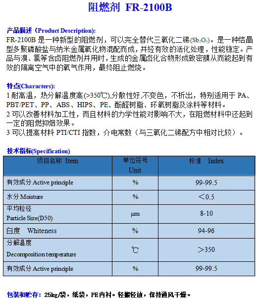阻燃劑 FR-2100B 2022-5-10 本文被閱讀 2833 次